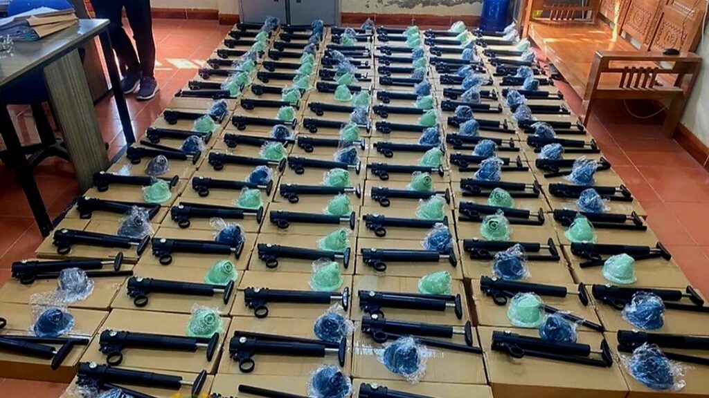 Mới đây Công an tỉnh Lạng Sơn phối hợp với lực lượng hải Quan, Bộ đội biên phòng cửa khẩu Tân Thanh phát hiện tại kho hàng ở xã Hoàng Văn Thụ có gần 320 khẩu súng được ngụy trang dưới dạng linh kiện sản phẩm thông tắc bồn cầu, sau khi lắp ráp hoàn chỉnh có tính sát thương rất cao, các bộ phận cấu thành đều có tác dụng, hình dáng của súng quân dụng.